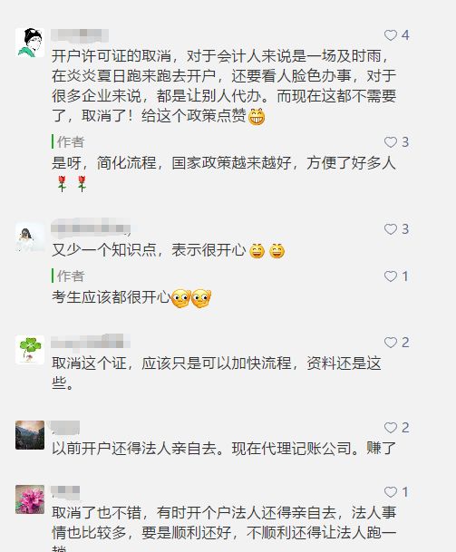 一个重大好消息要马上告诉大家,国家发布一个紧急文件:要取消开户许可证了,以后给企业开户不用等半年那么长了,直接就可以开户,对会计人来说将要省去大量的工作时间,不用跑腿了,又一个重大利好! 恭喜!国家宣布:开户许可证取消了! 重点:央行试点取消企业基本存款账户开户许可证,转为备案制。 人行官网发布《关于试点取消企业银行账户开户许可证核发的通知》(银发〔2018〕125 号),开启了取消开户许可证的试点。自2018年 6月 11日起,在试点地区企业开立基本账户由核准制改为备案制,不再核发基本存款账户开户许可证。 通知如下: 从6月11日起,江苏省泰州市和浙江省台州市的企业在银行完成备案后就可以开设基本存款账户,而不用等央行审批并核发企业账户开户许可证了。 5月23日,中国人民银行发布了《关于试点取消企业银行账户开户许可证核发的通知》,经国务院批准同意,央行决定试点取消企业银行账户开户许可证核发,试点地区人民银行分支机构对银行为企业开立基本存款账户由核准制调整为备案制,不再核发基本存款账户开户许可证。 换句话说,试点地区银行按规定审核企业身份、开户意愿真实性以及基本存款账户唯一性后,即可为符合条件的企业开立基本存款账户,不再需要央行审批。 简单地说,对企业来说,基本存款账户(基本户)是经营所必须的,是办理转账结算和现金收付的主办账户,企业只能在银行开立一个基本户,是开立其他银行结算账户的前提。 总结:此次央行发布大政策,取消开户许可证,给公司开户不用再等几个月的时间了,也不用跑腿了,对企业财务来说是一个是重大利好,很赞。 开户再也不难,会计人工作量大大减轻 对于老会计,企业负责人来说,什么是开户许可证,办理开户许可证是大有印象,每年为这事没少费腿劲,没少费神,让你看下办理许可证的流程你就知道了。 一、关于开户许可证,会计人必须要知道: 开户许可证是由中国人民银行核发的一种开设基本帐户的凭证,凡在中华人民共和国境内金融机构开立基本存款账户的单位可凭此证,办理其它金融往来业务。 简单的来说就是:你想开一家公司,你要先有营业执照,准许开办之后你的公司有资金来往账务,这时候需要银行批发开户许可证,没有此证不能正常运营。 二、办理开户许可证到底有多难?看完流程你就知道了 1、办证难不难,看看网友的热搜你就知道了,没有开过户的人绝对不知道的痛! 2、办证完流程汇总,估计要跑腿好几个月,会计人为此哭晕过: 流程图: 据会计说的粉丝反映,办理开户许可证及基本户,从预约,排队,办理,整个流程下来少则一个月,多则数月,让人头大的事情终于有着落了。 办证开户的费用和材料:以后不用跑了 一、先来看看材料(以基本户为准): 三证合一的营业执照(正本) 法人代表身份证 开立单位银行结算账户申请书 单位公章、财务章、法人代表私章 签订账户管理协议 机构税收居民身份声明文件 如非法人代表本人来办理,由法人代表委托他人办理需提供委托书及委托人的身份证复印件 二、办完证开户还需要一笔费用: 光办理一个许可证不行,你还要有账户(可选择),各地银行要求不一,一般客户经理会让你进行选择你需要哪些服务举例:以下是2017年北京地区中国建设银行开立基本户的收费标准 开户手续费(一次性收费100左右) 账户维护费(每年400左右) 网银(每年1000左右) 电子回单柜(每年400左右) 结算卡(每年500左右) 短信提醒(每年200左右) 密码器(一次性收费100左右,用于现场柜台支付及支票) U盾(一次性收费60左右) …… 看完心塞了…… 不过以后不用跑腿,办证开户简便,对会计人来说是一大福利,对企业来说更为利好。 工商联合税局:新规定,工作更简便 一、注册公司的注意了,看注册新规,给公司命名不得违反相关条例,请看以下通知 工商总局关于印发《企业名称禁限用规则》《企业名称相同相近比对规则》的通知 工商企注字〔2017〕133号 各省、自治区、直辖市及计划单列市、副省级市工商行政管理局、市场监督管理部门: 为落实《工商总局关于提高登记效率积极推进企业名称登记管理改革的意见》(工商企注字〔2017〕54号)关于开放企业名称库、建立完善企业名称查询比对系统等工作要求,总局研究制定了《企业名称禁限用规则》《企业名称相同相近比对规则》,现予印发,请结合企业名称登记管理改革需要,认真按照有关规定和要求执行。 二、工商总局联合税务总局简化注销公司流程,不经营的企业注销更加方便了!简直就是大福利 工商部门和税务部门将进一步加强协作,便利企业办理注册登记。 一是工商部门将在企业注册登记时通过线上线下多种方式,向企业发放涉税事项告知书,提醒企业及时到税务部门办理涉税事宜。 二是工商部门在国家企业信用信息公示系统设置提示服务,在企业发布简易注销公告前提醒企业及时到税务部门办理结清应纳税款、缴销发票等清税手续,以提高简易注销通过率。 三是在企业信息填报界面设置简易注销承诺书下载模块和详细说明,方便企业下载填写。同时,对于因承诺书文字、形式填写不规范(如不按《通知》规定样式上传承诺书)的企业,工商部门可以在企业补正后受理其简易注销申请。 四是允许企业在公告期届满次日起30日内向工商部门申请撤销简易注销公告。已撤销简易注销公告或者被