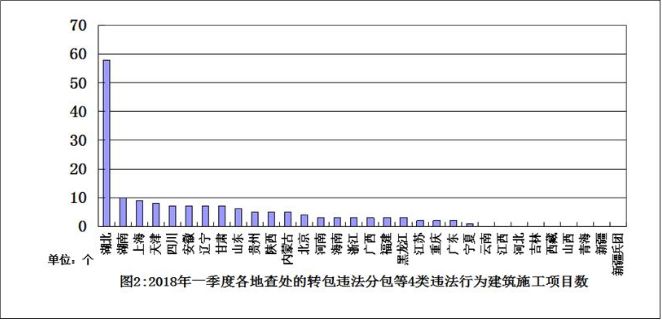 现将2018年一季度各地住房城乡建设主管部门上报的建筑工程施工转包违法分包等违法行为查处情况通报如下: