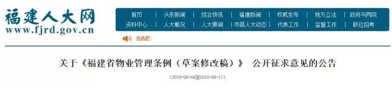 记者从福建省人大常委会获悉,为进一步提高地方立法质量,《福建省物业管理条例(草案修改稿)》现向社会公开征求意见。